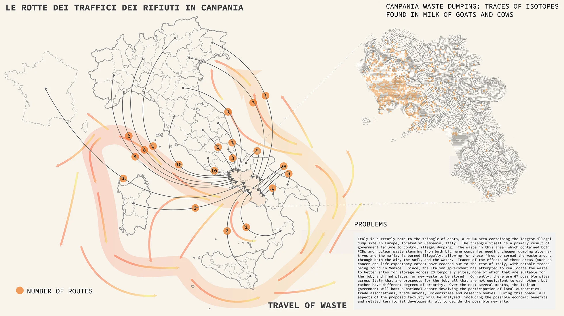 Our preliminary study work revolved around the geological landscape and how the built environment stems from it. The first videos show how the built environment rises from the materiality of the earth below. The second shows the negotiation that the built and natural environment give and take. That led us to look into how nuclear waste was part of that negotiation and the Italian conflict with the waste that exists.